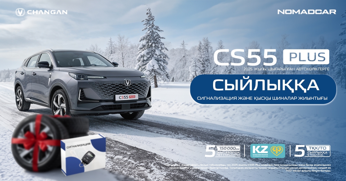 Осы бағдарлама аясында Changan CS55 Plus 2025 жылғы автомобильді сатып алғанда клиенттерге сигнализация және қысқы дөңгелектердің жинағы орнатумен — сыйлыққа беріледі.